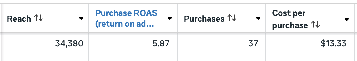5.87 ROAS and strong traffic volume, reaching over 34,000 people